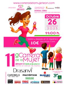 El domingo día 26 de octubre de 2025 se celebra la 11.ª Carrera de la Mujer contra el Cáncer de Mama ALMOM-Drasanvi, en un circuito urbano de la ciudad de León.